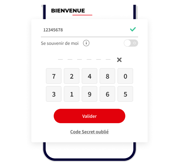 Votre Code Secret est composé de 6 chiffres. Vous seul le connaissez.