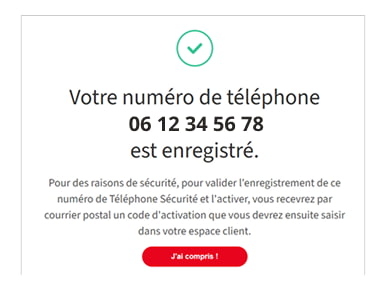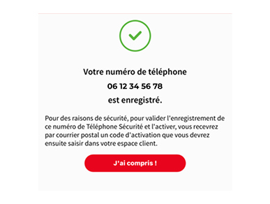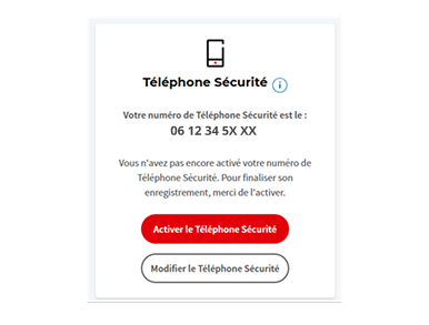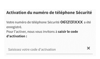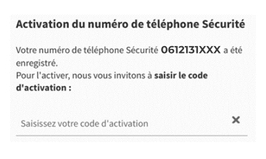 l'activation de votre numéro de Téléphone Sécurité à l'aide du code reçu par courrier à