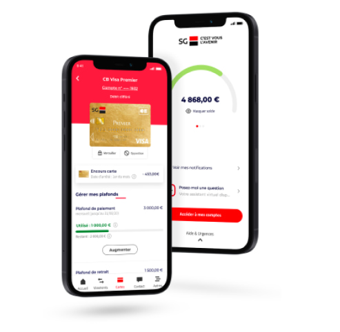 Consultez vos comptes et réalisez vos opérations depuis L'Appli SG(1), l'Espace Client ou le Service Client(2).