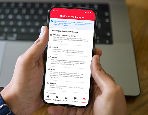(1)Le canal d'envoi dépend du type de notifications. Voir détail dans les Conditions Générales Banque à Distance dans l'article Service d'Alerte.